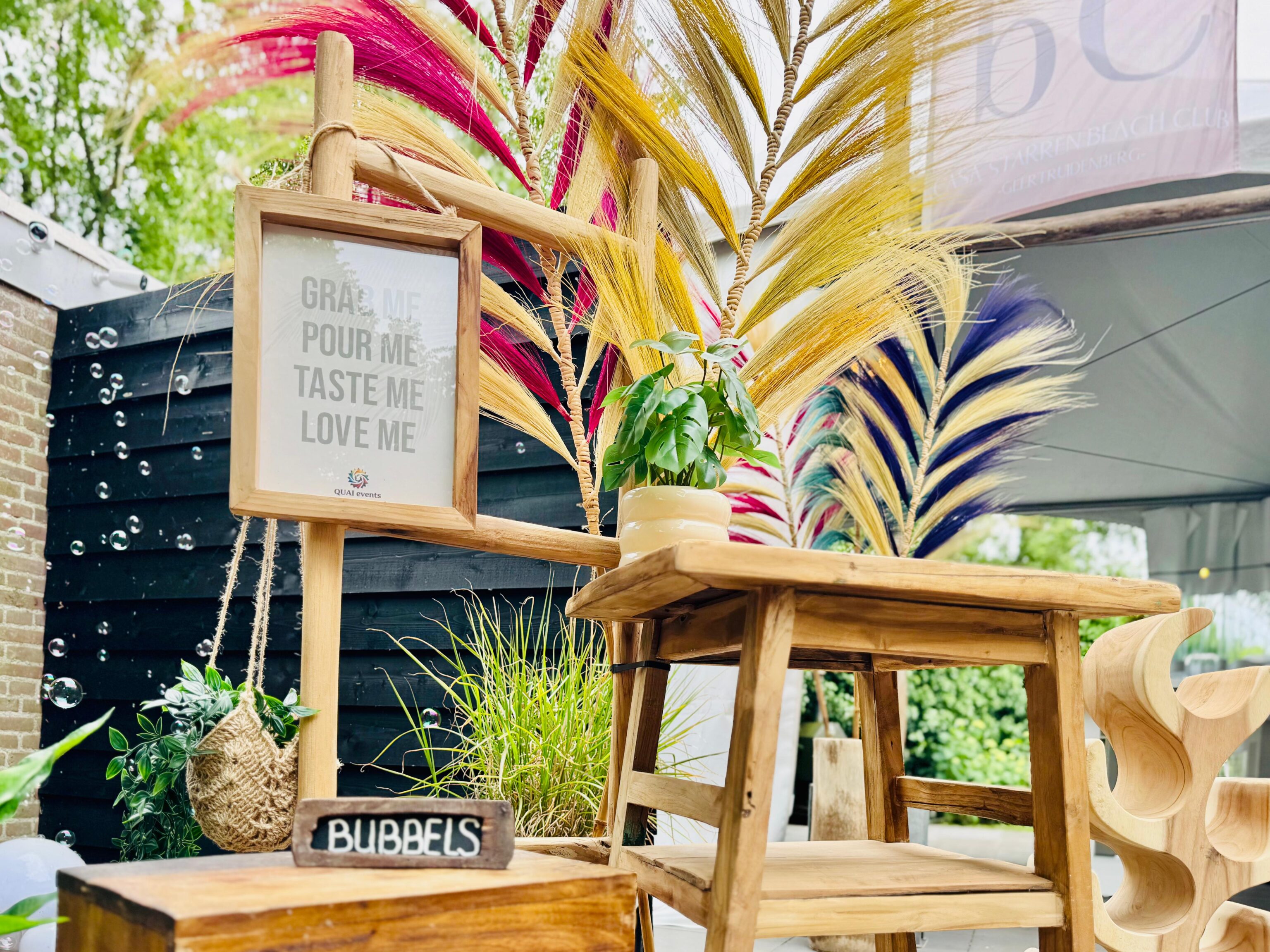 Om gezamenlijk te toosten is het fijn als er een plek is waar dit perfect vanaf uitgeserveerd kan worden. Met onze staande kast vol champagne flutes, een wijnrek en decoratie is dit een hele toffe setting om al uw gasten in een mum van tijd van een overheerlijk glaasje bubbels te voorzien. Of dit nu tijdens een bruiloft is of als kick-off bij een zakelijke bijeenkomst, de bubbels vliegen je letterlijk om de oren!