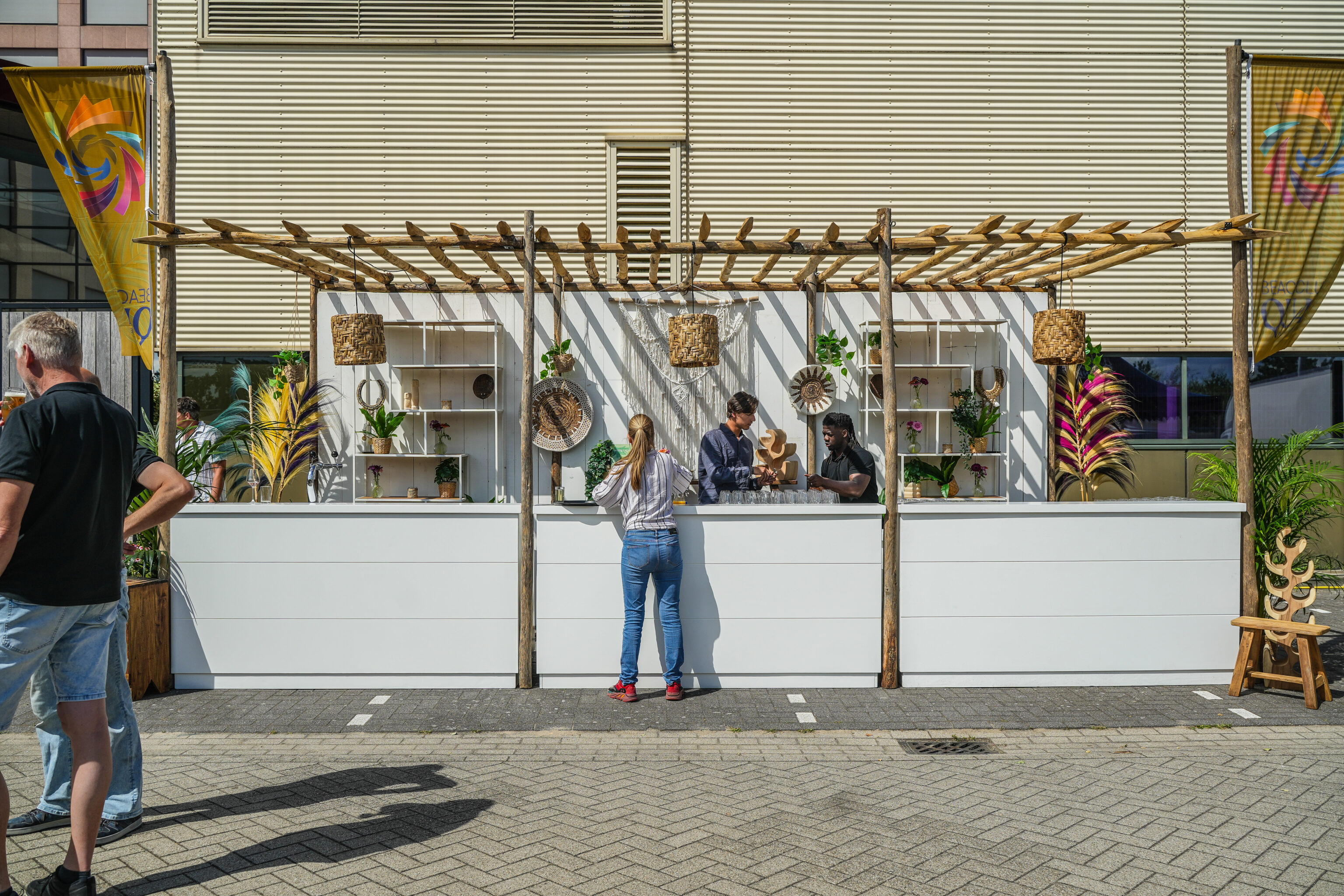 Wil je extra schaduw plekjes creëren op jouw event, maar zijn parasols niet passend bij jouw event. Overweeg dan onze Ibiza schaduwdaken. Deze kunnen worden voorzien van houten balken, latjes of rieten matten. Ze zijn een eye catcher op elk event en geeft veel mogelijkheden voor extra decoratie, denk aan het ophangen van reclame bordjes, verlichting en groendecoratie.